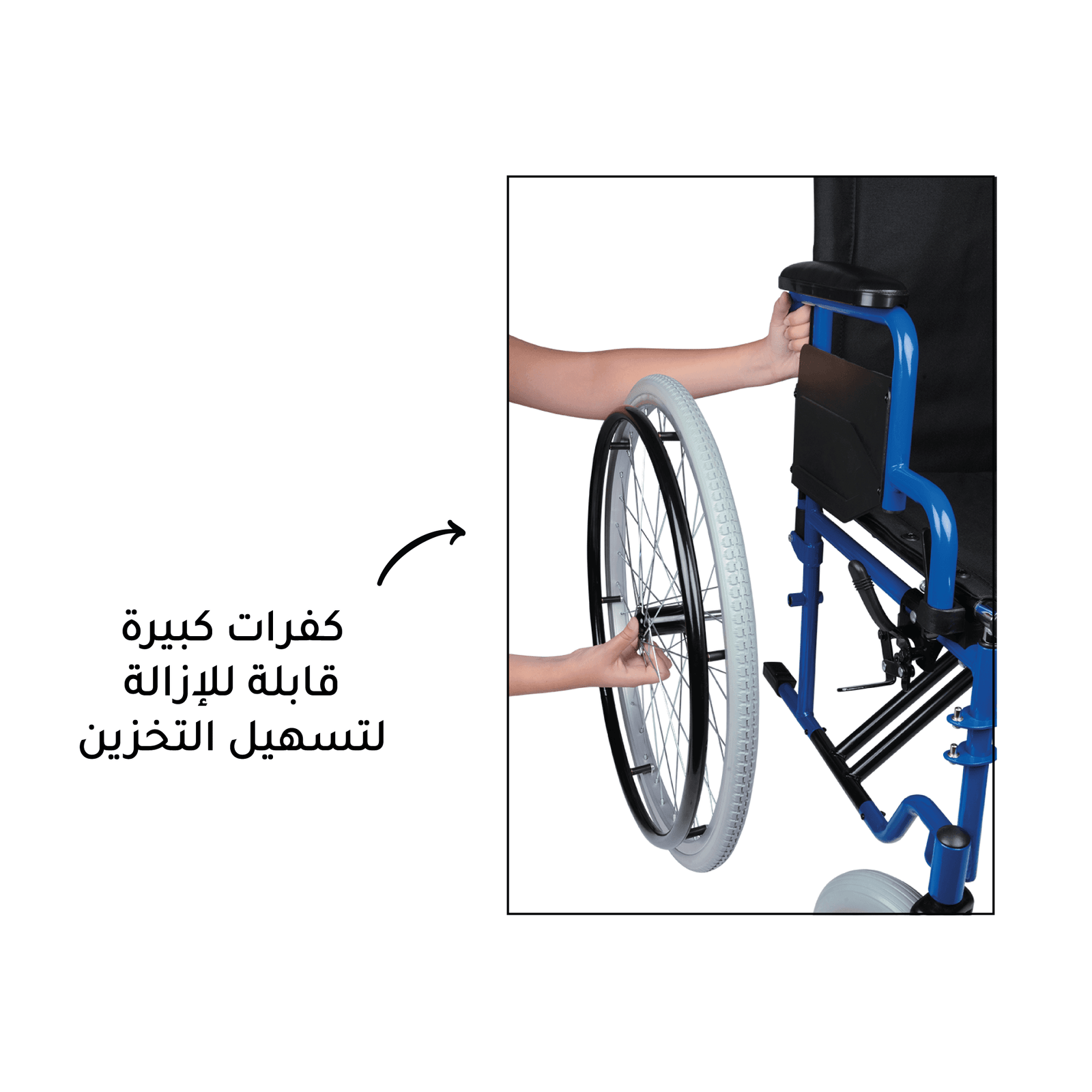 • يمكن فك العجلات الخلفية بسهولة لتقليل الحجم وتسهيل التخزين في المساحات الصغيرة.